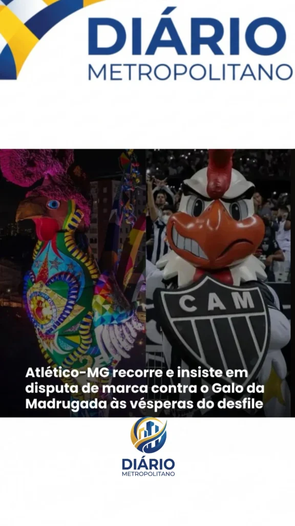 O Clube Atlético Mineiro interpôs uma apelação insistindo na tentativa de anular, total ou parcialmente, o registro da marca “Galo Folia”, de titularidade do Galo da Madrugada – dentro do processo nº 5060529-56.2022.4.02.5101.