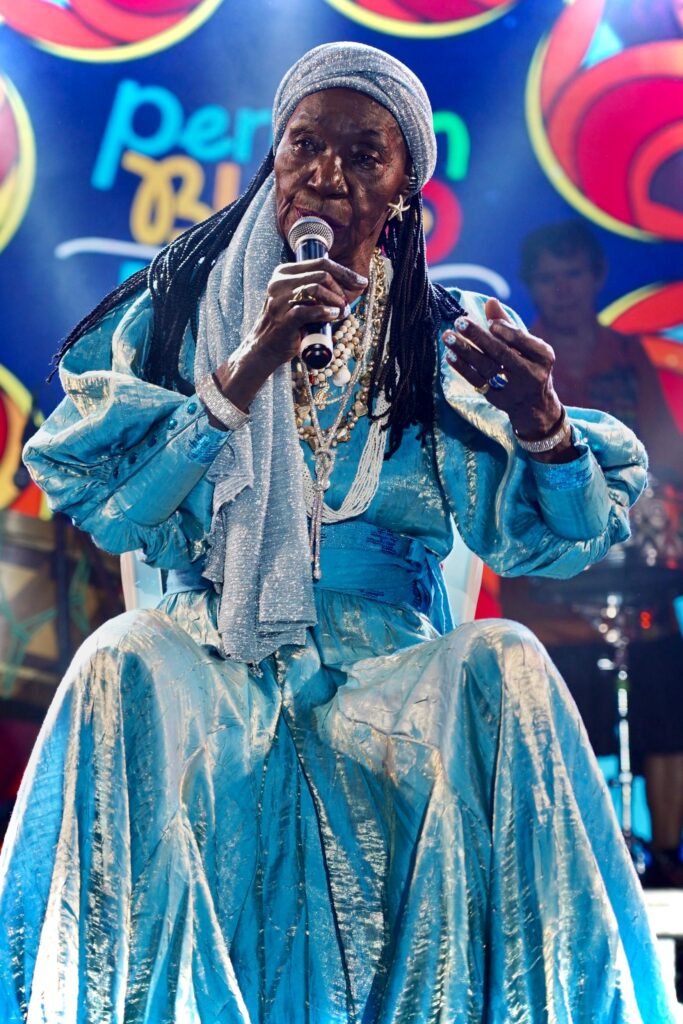 Às 19h, Lia de Itamaracá, Patrimônio Vivo de Pernambuco e referência máxima da ciranda, tomou o palco com sua voz que pulsa histórias e memórias em cada canto e passo de roda. Neste momento de sua carreira, Lia vem consolidando sua obra com o álbum Pelos Olhos do Mar, um projeto em parceria com a cantora Daúde lançado em 2025 que mistura ciranda, coco e bolero em arranjos que cruzam gerações e paisagens sonoras, reunindo composições de nomes como Chico César, Céu e Emicida. Essa ponte entre tradição e horizonte sonoro contemporâneo ecoou forte na Ilha de Itamaracá, enchendo o espaço de movimento e canto coletivo.